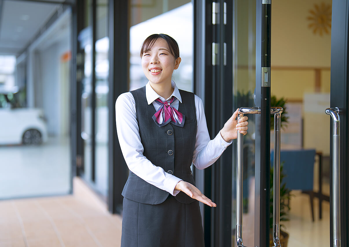 Honda Cars 中央神奈川の各店舗のドアは自動ドアではありません。これには強いこだわりがあり、駐車場にお客様のクルマが見えたら、スタッフがお店から出て、お出迎えを行います。その際に、自らの手でドアを開ける。帰りも同様にお見送りをします。小さなことのようですが、お客様のために、スタッフがひとつの行動をするということがCS向上の意識へとつながっていくのです。