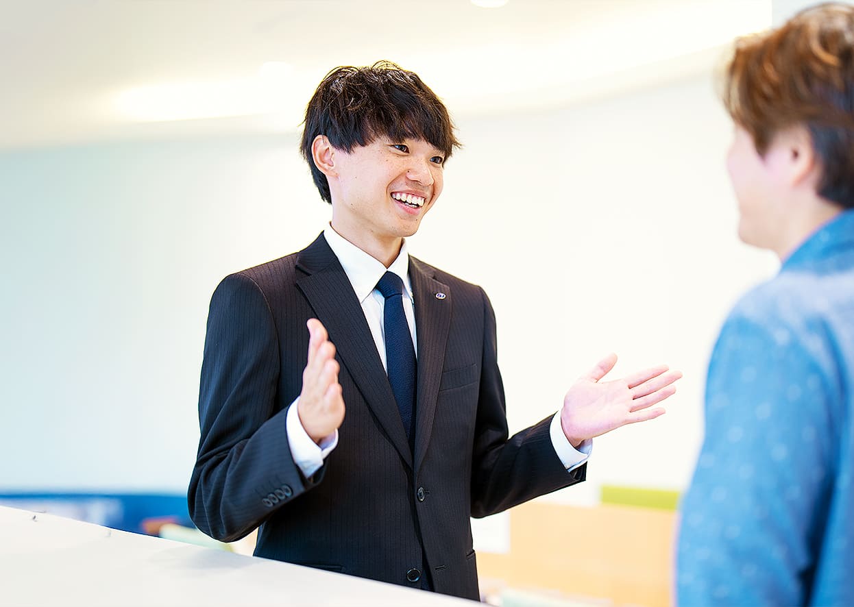 営業の仕事は、お客様と商談し、ご提案したおクルマを購入していただくこと。そして、アフターケアなどを通じてお客様のカーライフを支えていくことです。クルマはお客様にとって高価な買い物になりますので、「この人からなら買っても大丈夫」「この人にずっと頼っていきたい」と信頼してもらえる存在になることを心がけています。