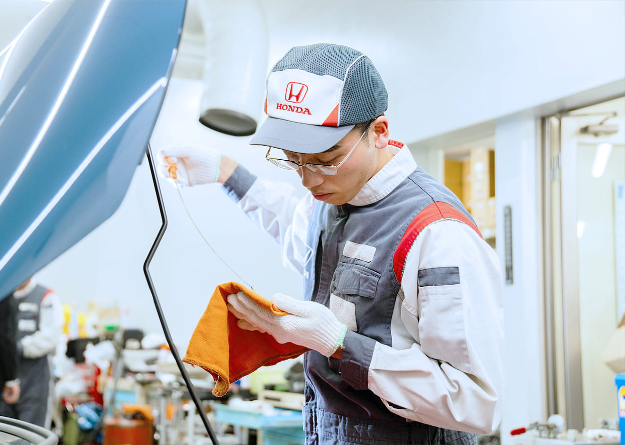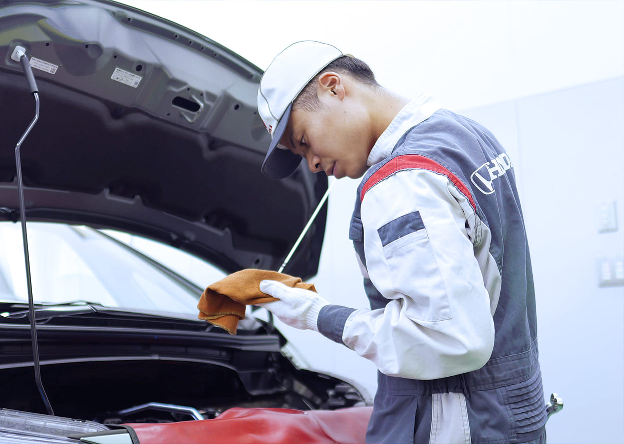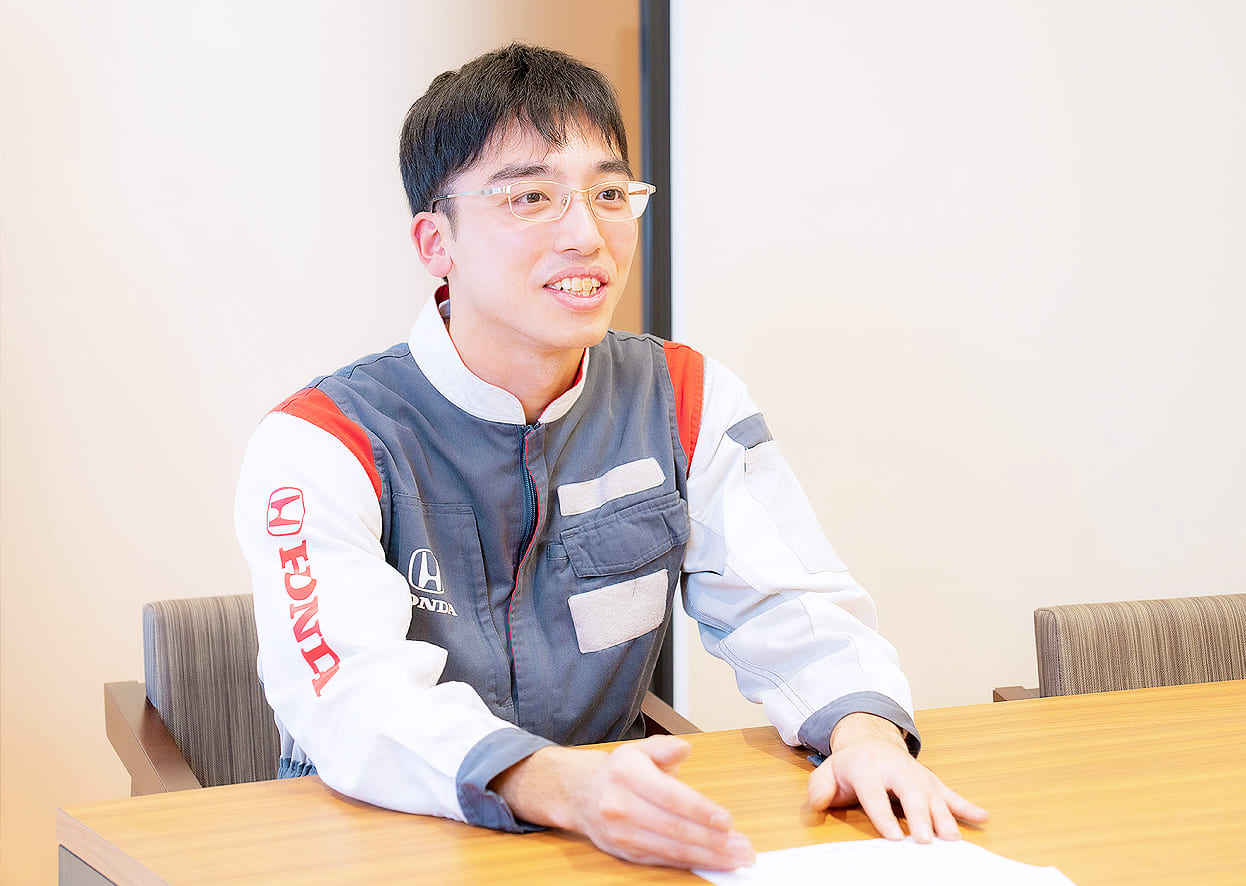 他のメーカーにはないエンジンなどの技術に惹かれたことがきっかけで、ずっとHondaの整備士になりたいと夢見てきました。就活の際には、いくつかのHondaディーラーが選択肢にありましたが、その中でこの会社を選んだ理由は、ひとつは着実に成長していける環境が整っていること、そしてもうひとつが家族主義という考え方に共感したからです。