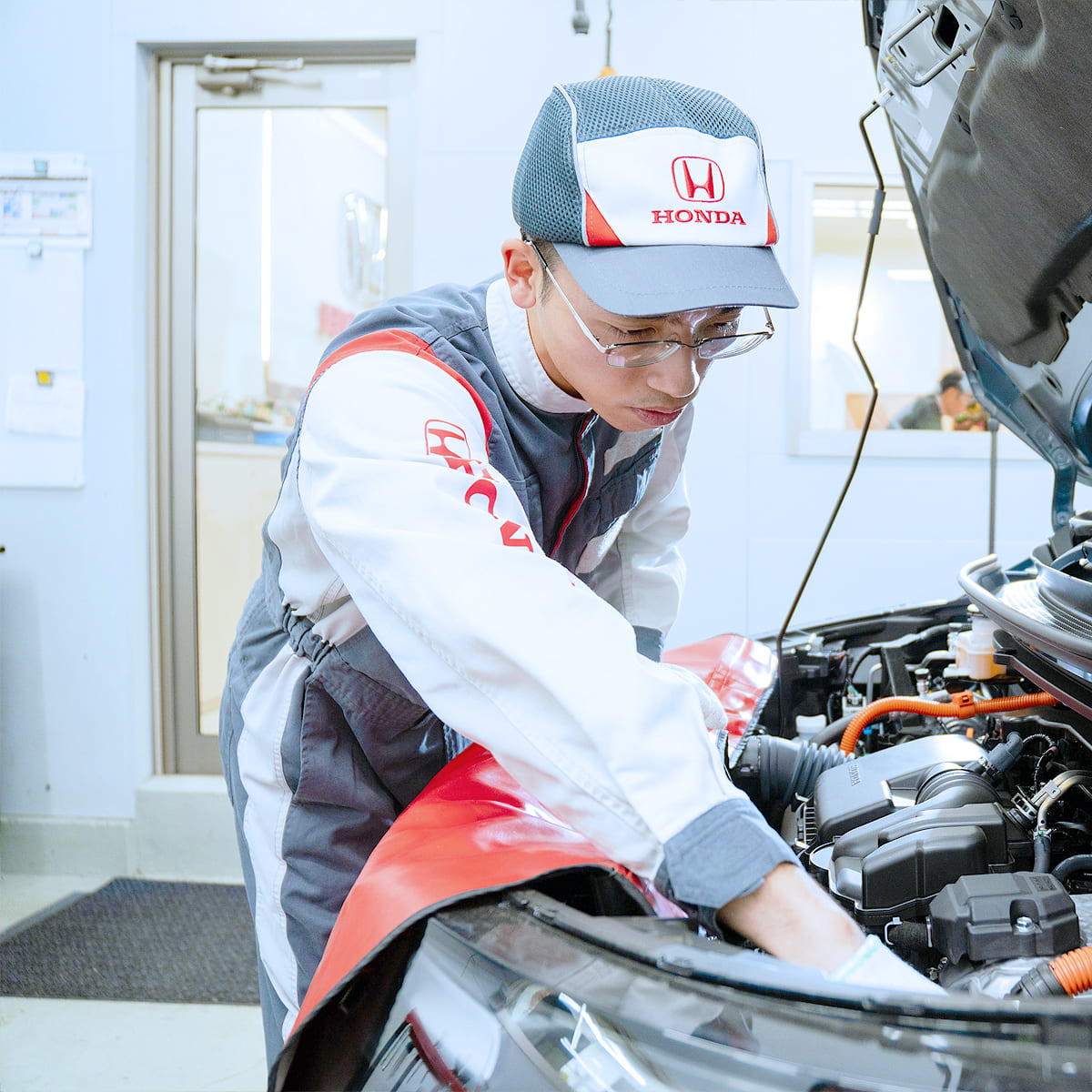 Honda Cars 中央神奈川のサービススタッフは、ただクルマを整備するだけが仕事ではありません。お客様に作業内容を説明したり、安全で快適なカーライフを送っていただくための様々なご提案をすることも役割のひとつです。「ありがとう」「これからもお願いね」など直接感謝の言葉をいただくこともあり、人と人が接することのあたたかさを感じることもできます。