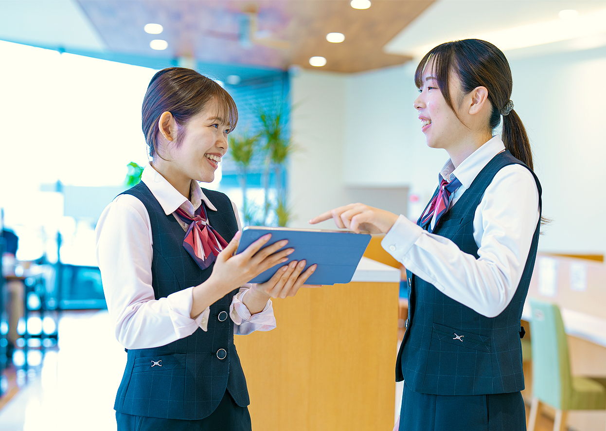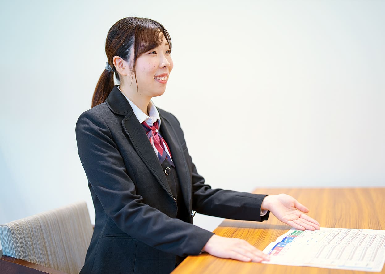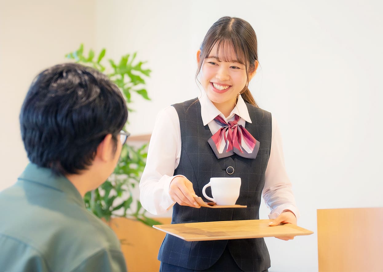 CAの仕事は、午前中は来店されるお客様が多いので、お出迎えやドリンクサービスなどの接客がメインになります。午後はお客様の来店が落ちつくので、常にフロアが見えるところでデスクワークをしながらお客様の対応をします。また、私は経理を担当しているので、夕方からは締めの作業も行います。