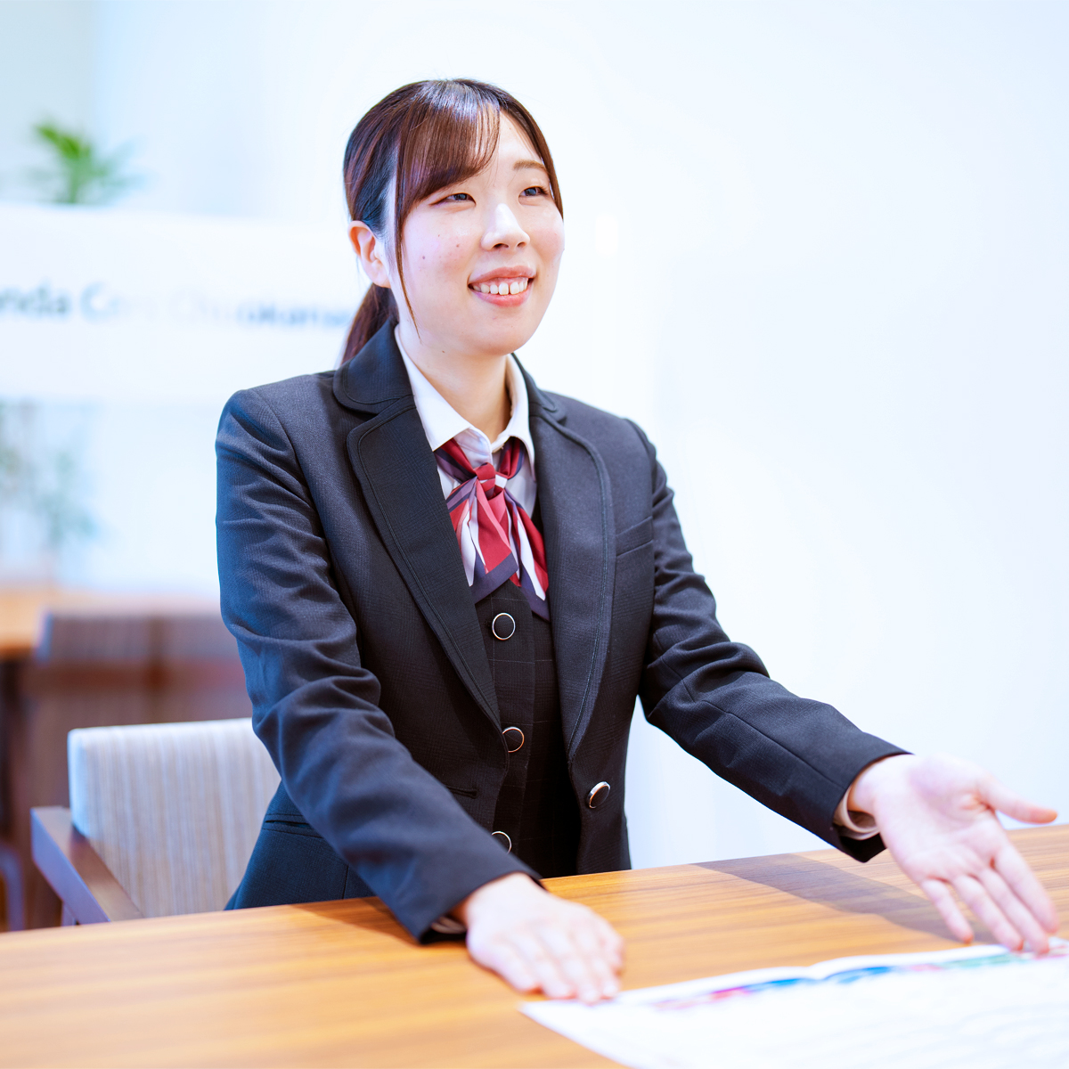 デスクワークだけでなく、お客様と直に接して「ありがとう」という言葉をいただけるような仕事をしたいと思っていたので、Honda Cars 中央神奈川のCAスタッフは私にとって理想の職種でした。実際に入社してからは、思っていた以上にお客様とコミュニケーションをとる機会が多く、あらためてこの仕事を選んで良かったと感じています。