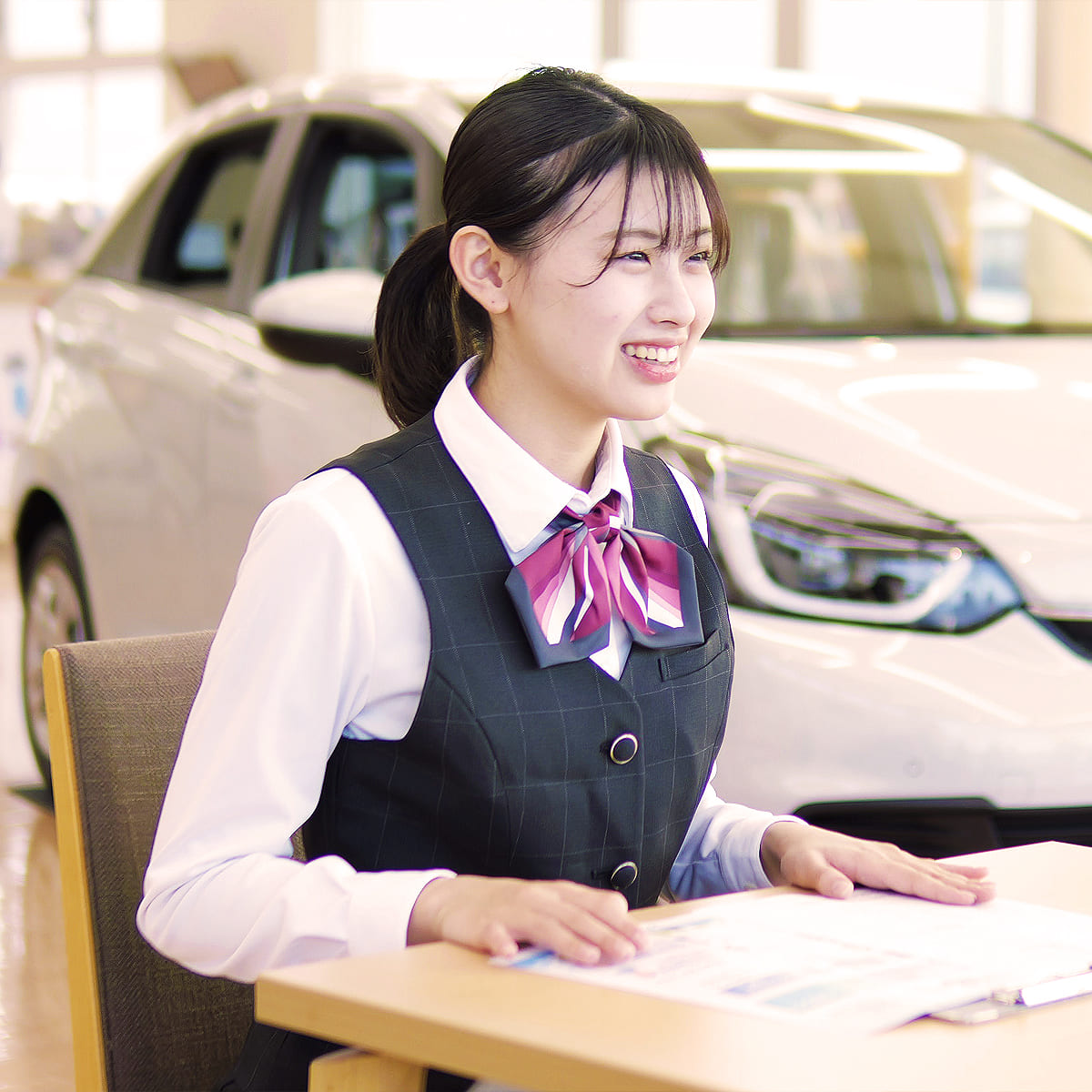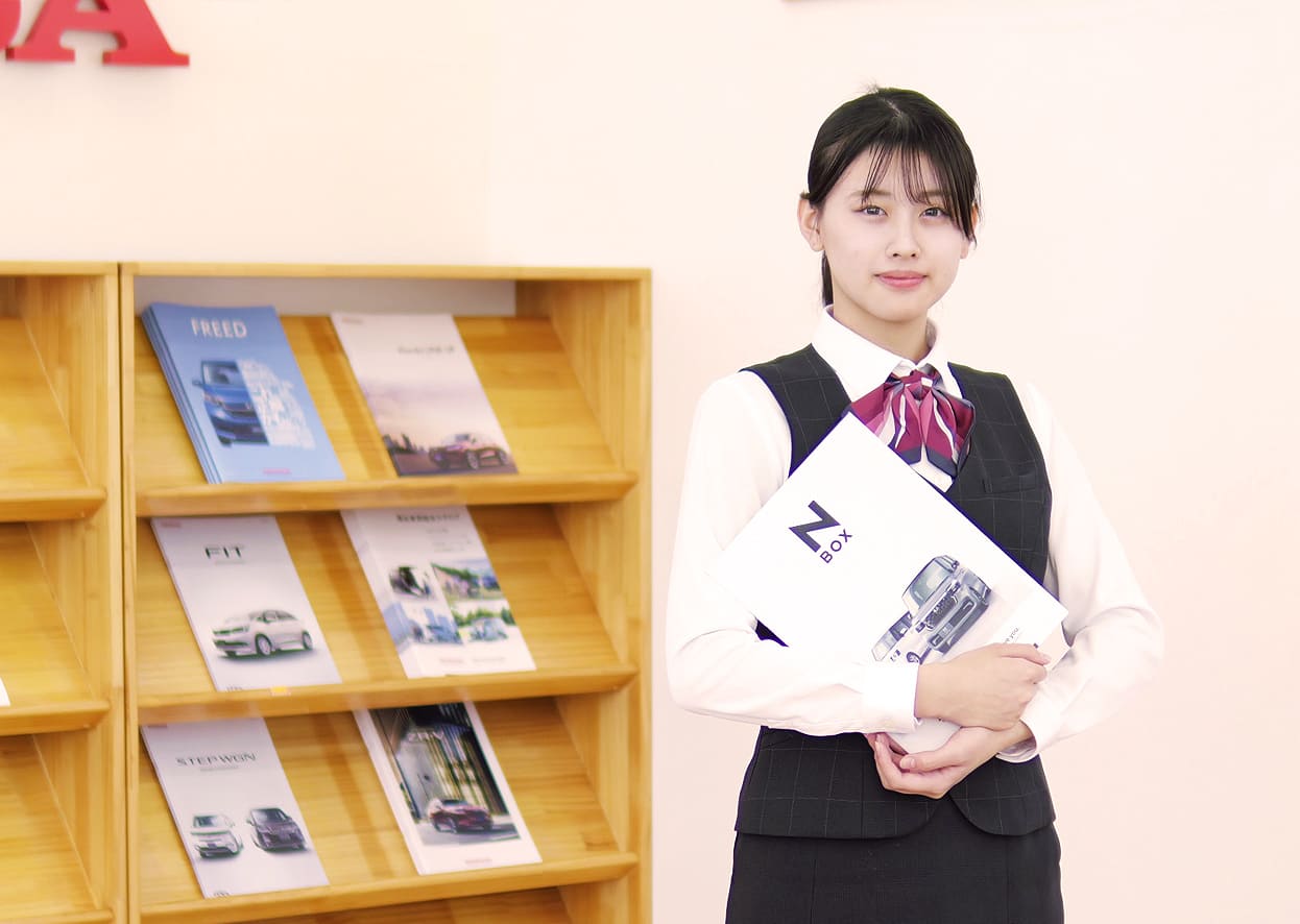 特に女性の皆さんは、クルマの知識がないとディーラーの仕事に不安を持たれるかもしれませんが、この会社には優しく頼りがいのある先輩がたくさんいますし、分からないことは丁寧に教えてくれるので安心です。ぜひ、CAというやりがいのある仕事にチャレンジしてください。一緒に楽しく働きましょう。
