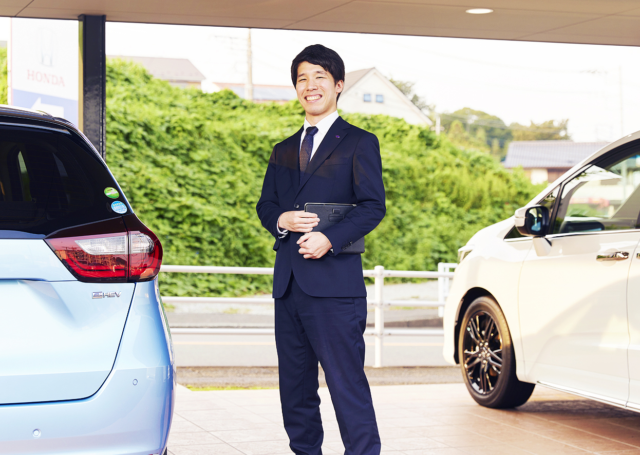 両親がHonda Cars 中央神奈川を利用していたこともあり、子供の頃からよく一緒にショールームに来ていたんです。まさか将来、ここで働くことになるとは思っていませんでしたが、当時から子供ながらに人のあたたかさや居心地の良さを感じていました。そんな記憶がきっかけとなり、家族主義という考え方にも心を惹かれて入社を決めました。