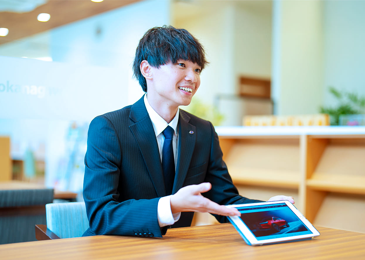 保険事業部は自動車保険を中心に、火災保険や生命保険など、お客様をお守りする保険をトータルで取り扱います。当社で加入いただくことのメリットをご説明し、納得の上お申し込みいただきます。保険という分野は分かりづらいものなので、相手の立場に立った説明力や寄り添う姿勢が養われます。